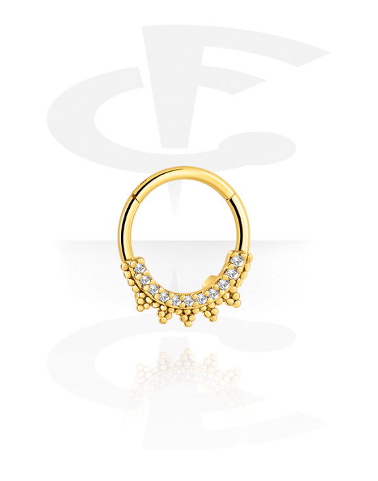 Piercingový clicker (chirurgická ocel, zlatá, lesklý povrch) s krystalovými kamínky