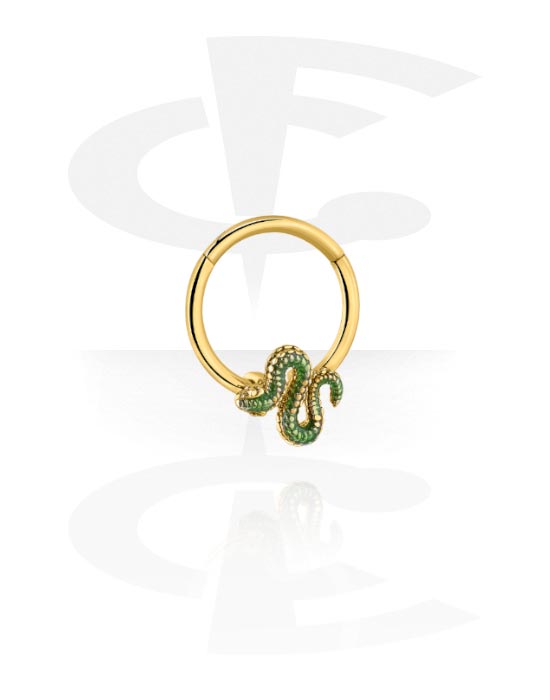 Piercingový clicker (chirurgická ocel, zlatá, lesklý povrch) s krystalovými kamínky