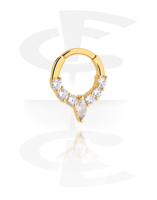 Piercingový clicker (chirurgická ocel, zlatá, lesklý povrch) s krystalovými kamínky