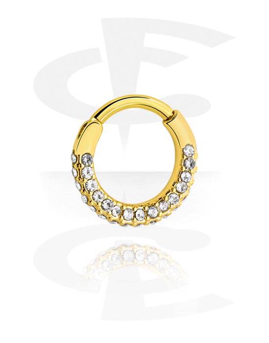 Piercingový clicker (chirurgická ocel, zlatá, lesklý povrch) s krystalovými kamínky