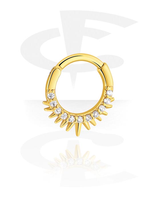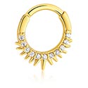 Piercingový clicker (chirurgická ocel, zlatá, lesklý povrch) s krystalovými kamínky
