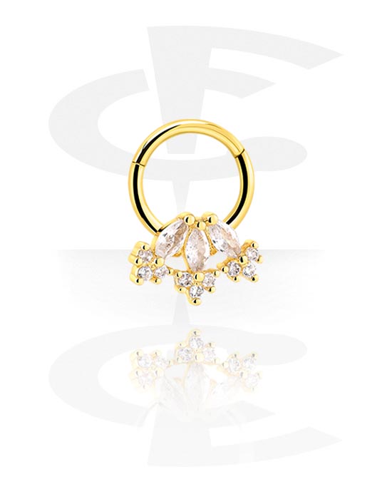 Piercingový clicker (chirurgická ocel, zlatá, lesklý povrch) s krystalovými kamínky