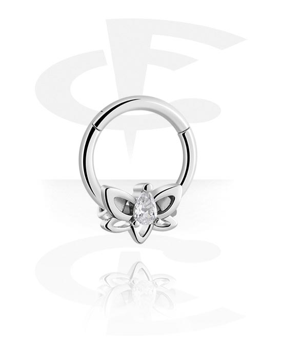 Piercingový clicker (chirurgická ocel, stříbrná, lesklý povrch) s krystalovými kamínky