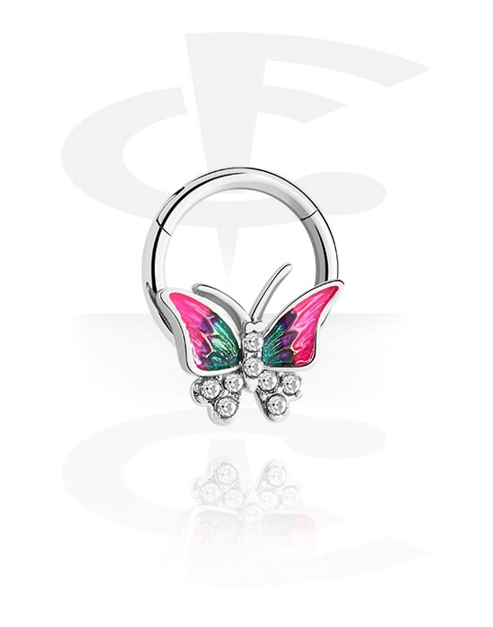 Piercingový clicker (chirurgická ocel, stříbrná, lesklý povrch) s krystalovými kamínky