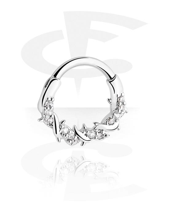 Piercingový clicker (chirurgická ocel, stříbrná, lesklý povrch) s krystalovými kamínky