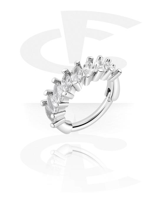 Piercingový clicker (chirurgická ocel, stříbrná, lesklý povrch) s krystalovými kamínky