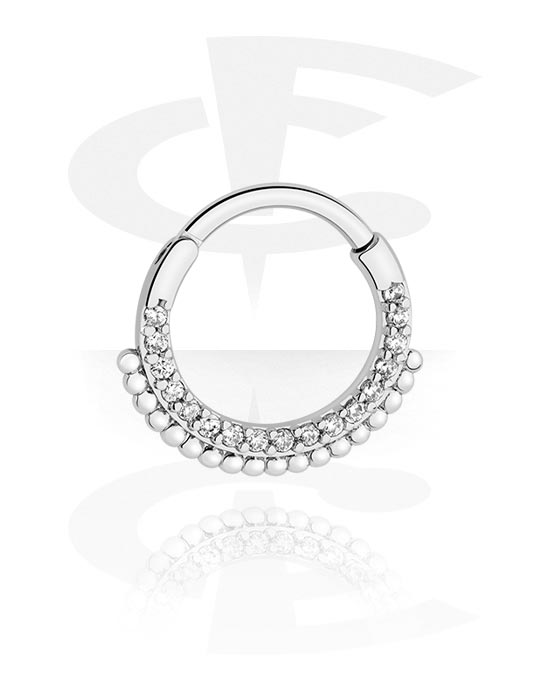 Piercingový clicker (chirurgická ocel, stříbrná, lesklý povrch) s krystalovými kamínky
