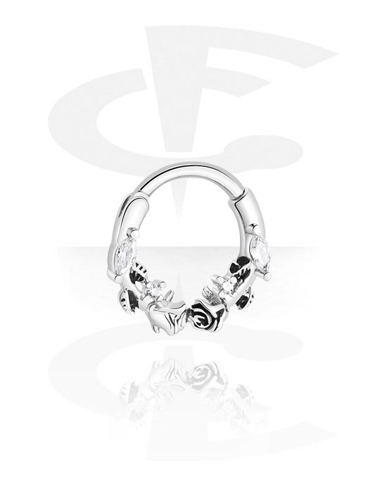 Piercingový clicker (chirurgická ocel, stříbrná, lesklý povrch) s designem růže a krystalovými kamínky