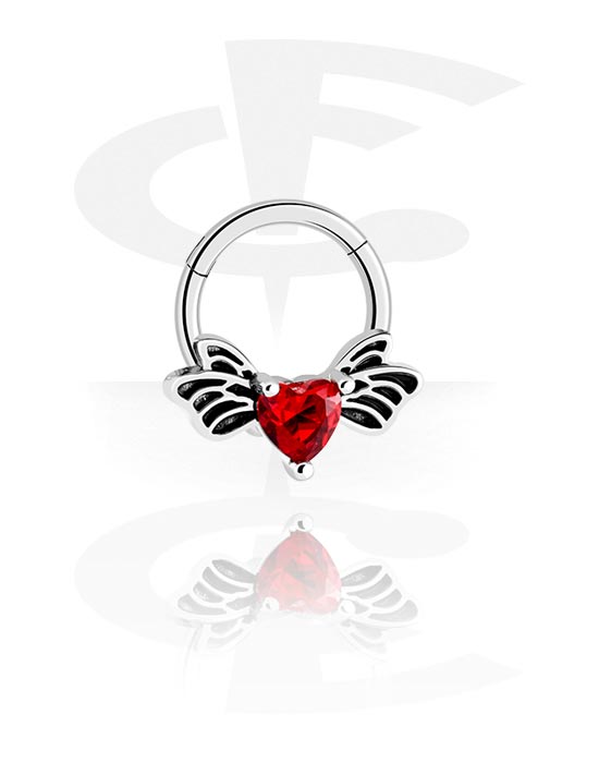 Piercingový clicker (chirurgická ocel, stříbrná, lesklý povrch) s krystalovým srdcem