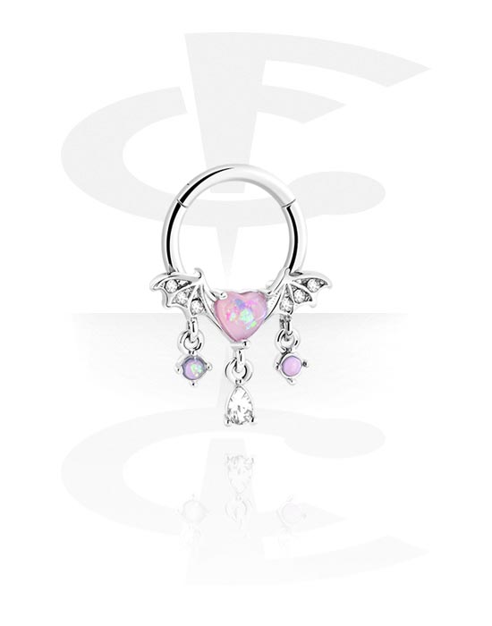 Piercingový clicker (chirurgická ocel, stříbrná, lesklý povrch) s přívěskem srdce a syntetickým opálem