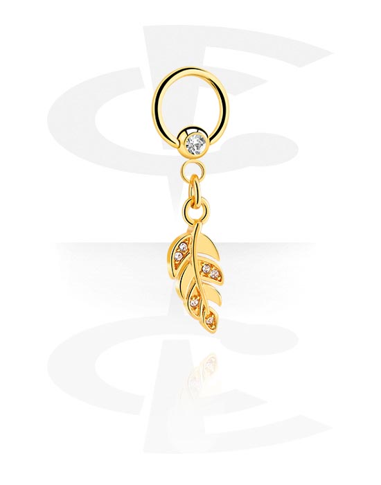 Kroužek s kuličkou (chirurgická ocel, zlatá, lesklý povrch) s krystalovým kamínkem a přívěskem