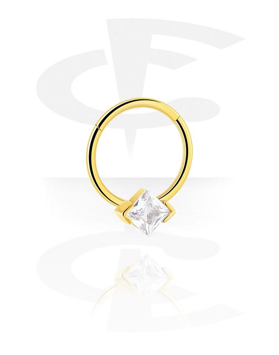 Piercingový clicker (chirurgická ocel, zlatá, lesklý povrch) s krystalovým kamínkem
