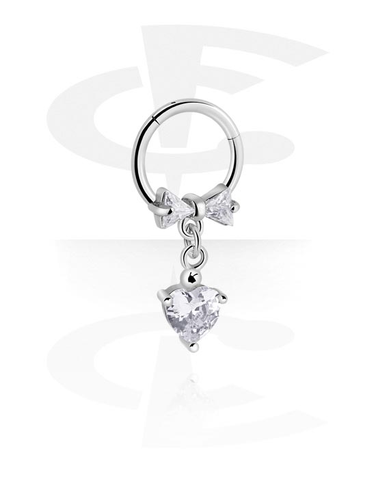 Piercingový clicker (chirurgická ocel, stříbrná, lesklý povrch) s přívěskem srdce a krystalovými kamínky