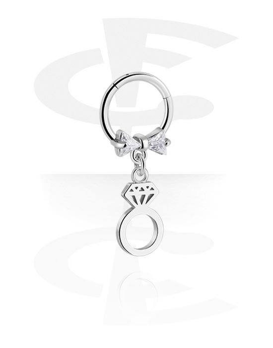 Piercingový clicker (chirurgická ocel, stříbrná, lesklý povrch) s přívěskem kroužek a krystalovými kamínky