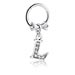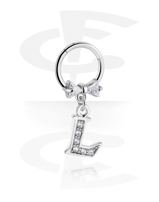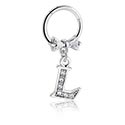 Piercingový clicker (chirurgická ocel, stříbrná, lesklý povrch) s lukem a přívěskem s písmenem „L“