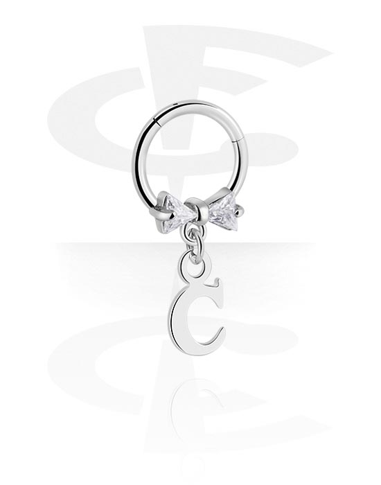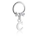 Piercingový clicker (chirurgická ocel, stříbrná, lesklý povrch) s lukem a přívěskem s písmenem „C“