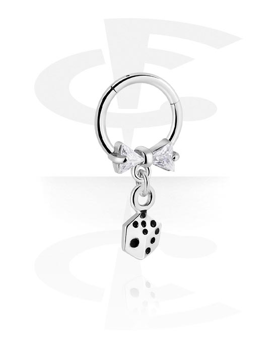 Piercingový clicker (chirurgická ocel, stříbrná, lesklý povrch) s lukem a přívěskem kostka