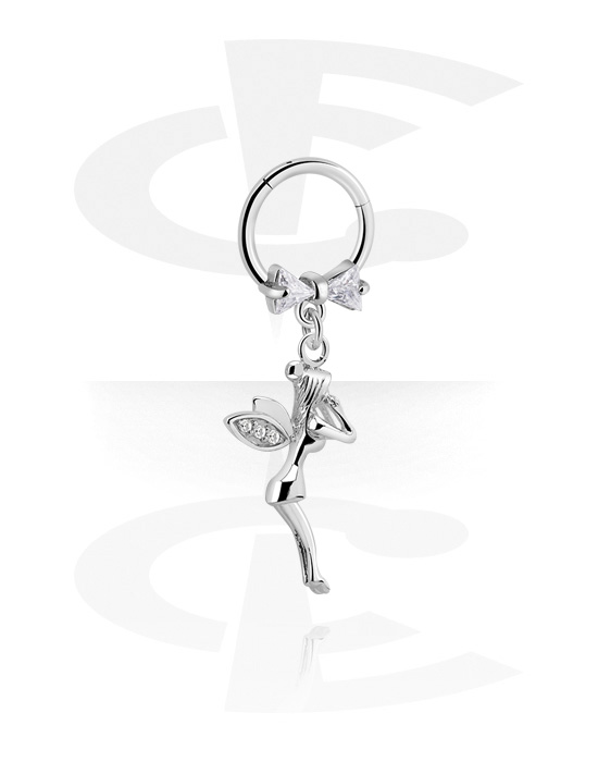 Piercingový clicker (chirurgická ocel, stříbrná, lesklý povrch) s lukem a přívěskem víla