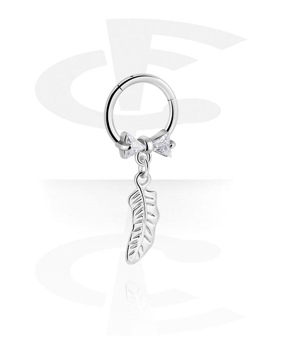 Piercingový clicker (chirurgická ocel, stříbrná, lesklý povrch) s lukem a přívěskem pírko
