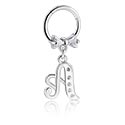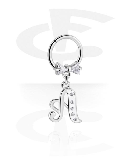 Piercingový clicker (chirurgická ocel, stříbrná, lesklý povrch) s lukem a přívěskem s písmenem „A“