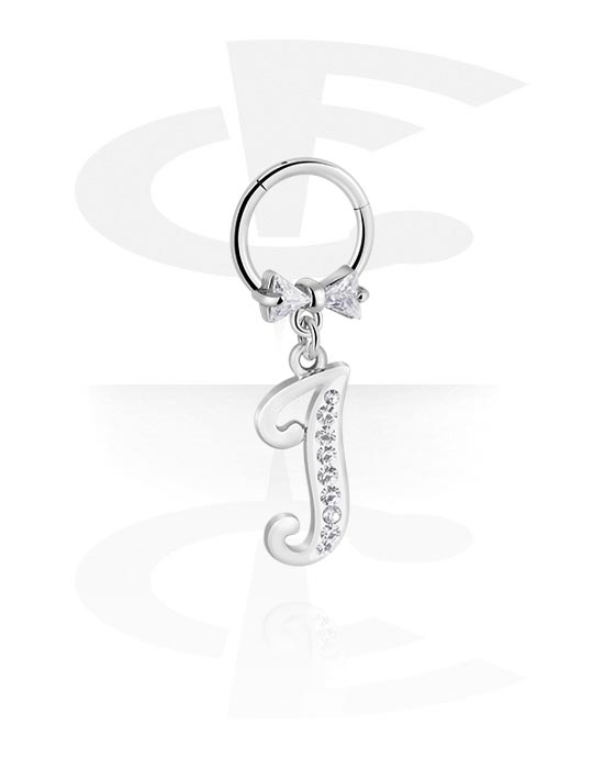 Piercingový clicker (chirurgická ocel, stříbrná, lesklý povrch) s lukem a přívěskem s písmenem „I“