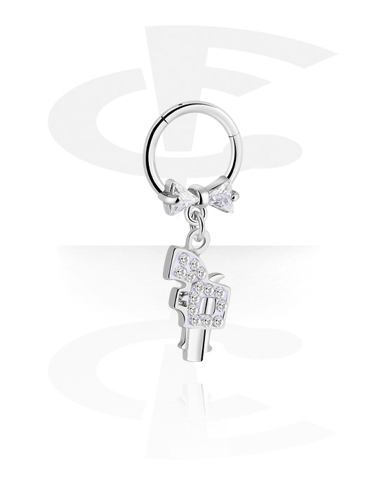 Piercingový clicker (chirurgická ocel, stříbrná, lesklý povrch) s lukem a přívěskem pistole
