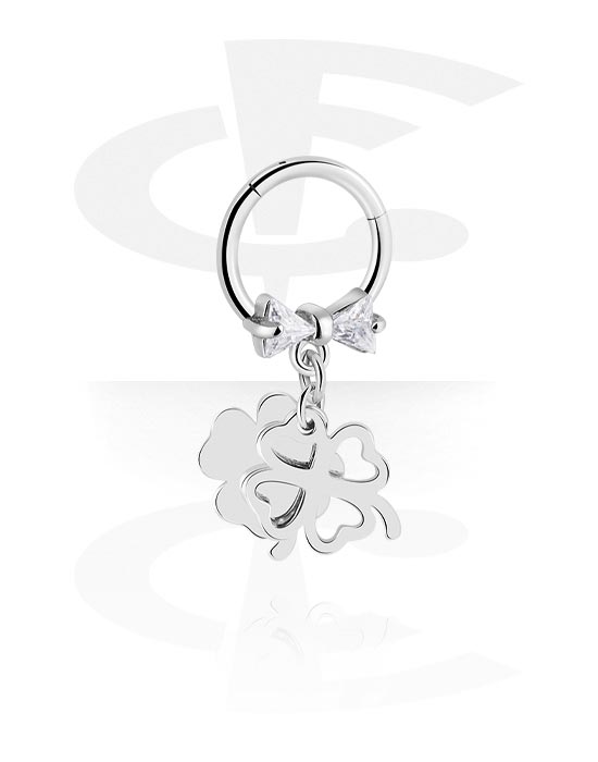 Piercingový clicker (chirurgická ocel, stříbrná, lesklý povrch) s lukem a přívěskem čtyřlístek