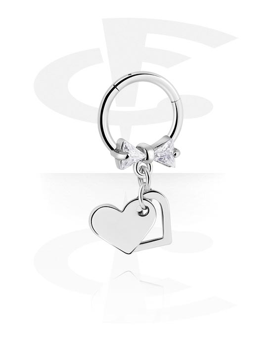 Piercingový clicker (chirurgická ocel, stříbrná, lesklý povrch) s lukem a přívěskem srdce