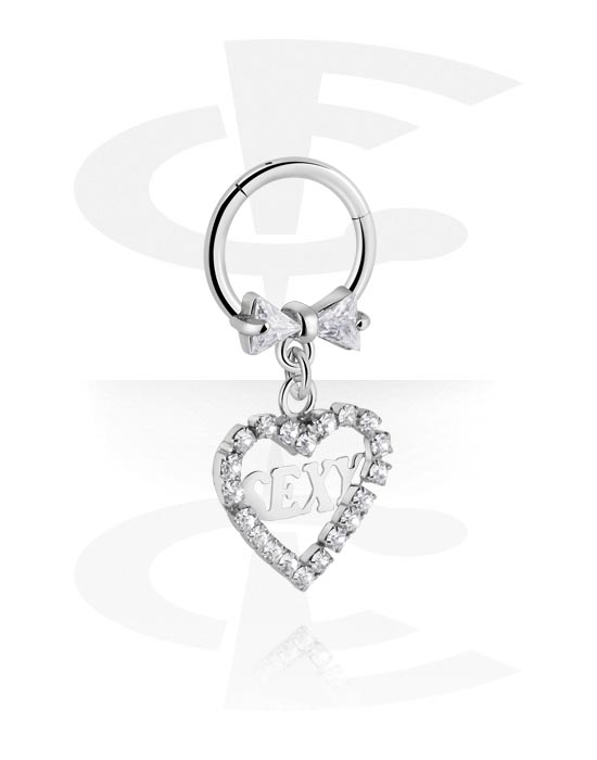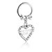 Piercingový clicker (chirurgická ocel, stříbrná, lesklý povrch) s přívěskem srdce a krystalovými kamínky