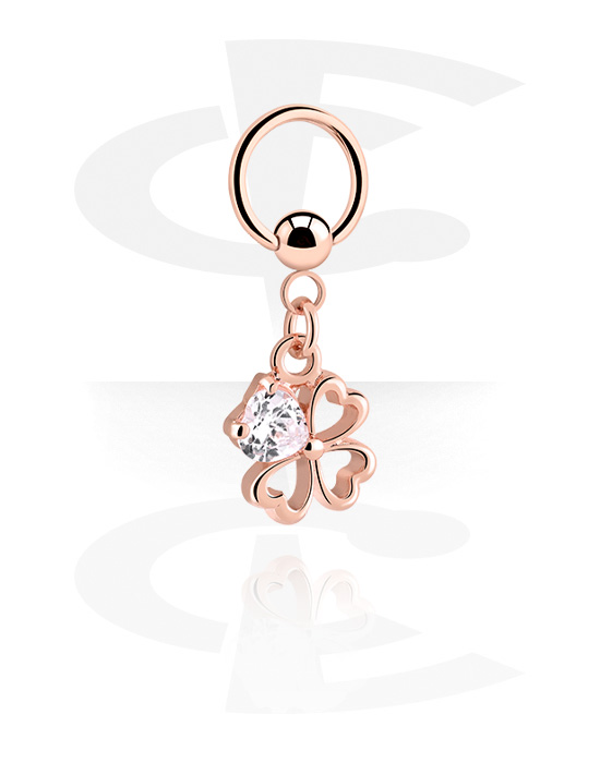 Kroužek s kuličkou (chirurgická ocel, růžové zlato, lesklý povrch) s krystalovým kamínkem