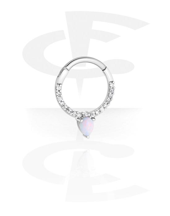 Piercingový clicker (chirurgická ocel, stříbrná, lesklý povrch) s krystalovými kamínky a syntetickým opálem