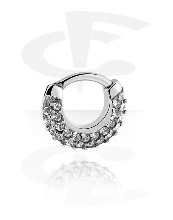 Piercingový clicker (chirurgická ocel, stříbrná, lesklý povrch) s krystalovými kamínky