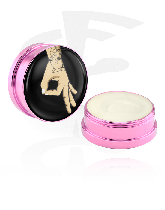 High quality jewelled container in a plug-like look, made of anodised aluminium. Available in various colours and designs. The deodorising conditioning creme takes care of your stretched earlobes and prevents bad smells. After a quick and easy application, the natural ingredients provide optimal skincare and nice smells.