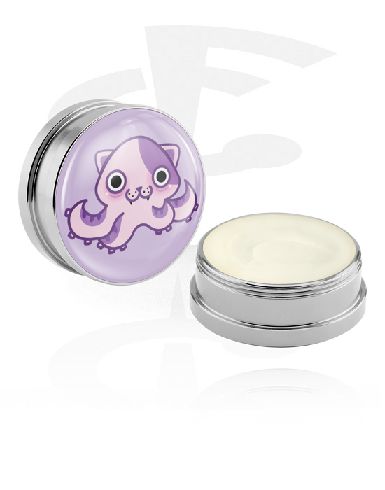 High quality jewelled container in a plug-like look, made of anodised aluminium. Available in various colours and designs. The deodorising conditioning creme takes care of your stretched earlobes and prevents bad smells. After a quick and easy application, the natural ingredients provide optimal skincare and nice smells.