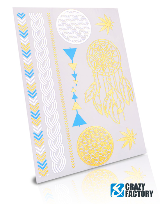 Temporary tattoo. Applied with water and holds for a couple of days. Can be removed easily. Our Neon-Tattoos glow in bright, intense colours when exposed to blacklight (UV-light). The perfect highlight for a night out!