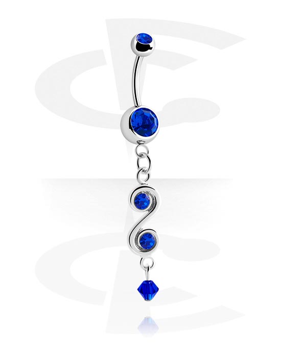 Gorgeous eye-catching sparkle for your belly button piercing: Double Jewelled bananabell made of surgical steel with an ornamental Jewelled dangle. Available in several beautiful colours. Take your pick!