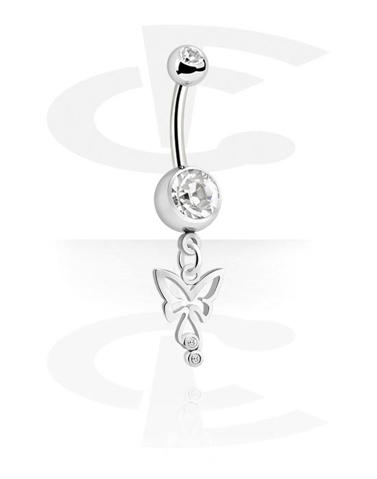 Navlering (kirurgisk stål, sølv, blank finish) med Charm med sommerfugl og krystaller