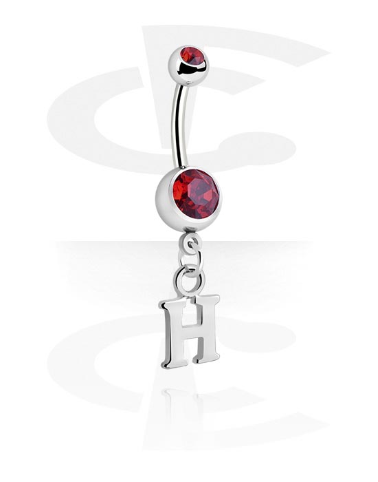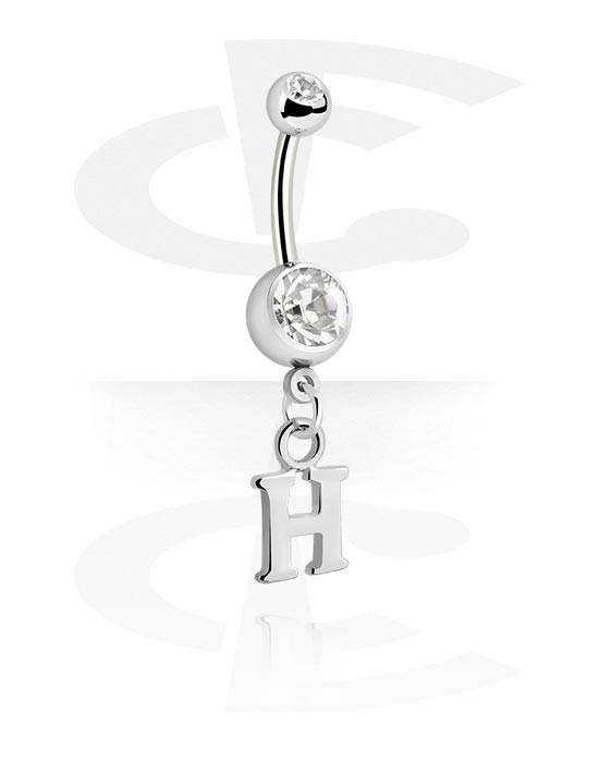 Navlering (kirurgisk stål, sølv, blank finish) med charm med bogstavet H og krystaller