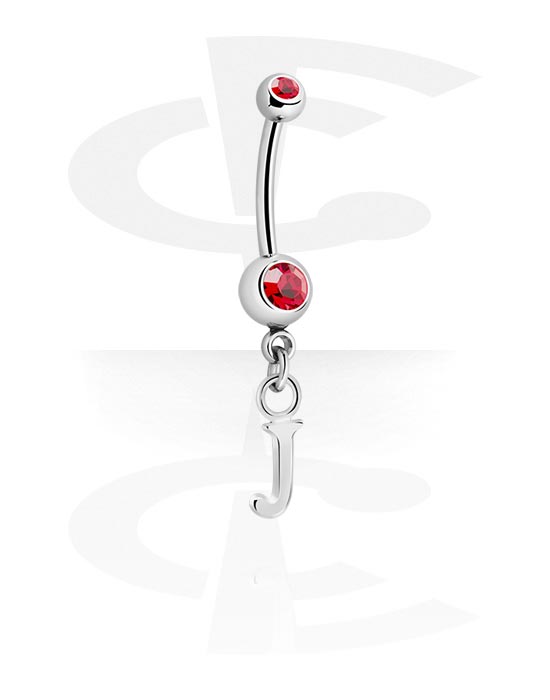 Navlering (kirurgisk stål, sølv, blank finish) med charm med bogstavet J og krystaller