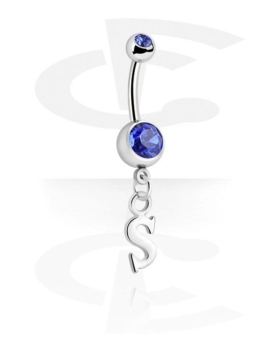Navlering (kirurgisk stål, sølv, blank finish) med charm med bogstavet S og krystaller
