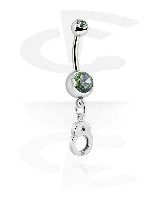 Navlering (kirurgisk stål, sølv, blank finish) med Juvelbesatte kugler og håndjernsvedhæng