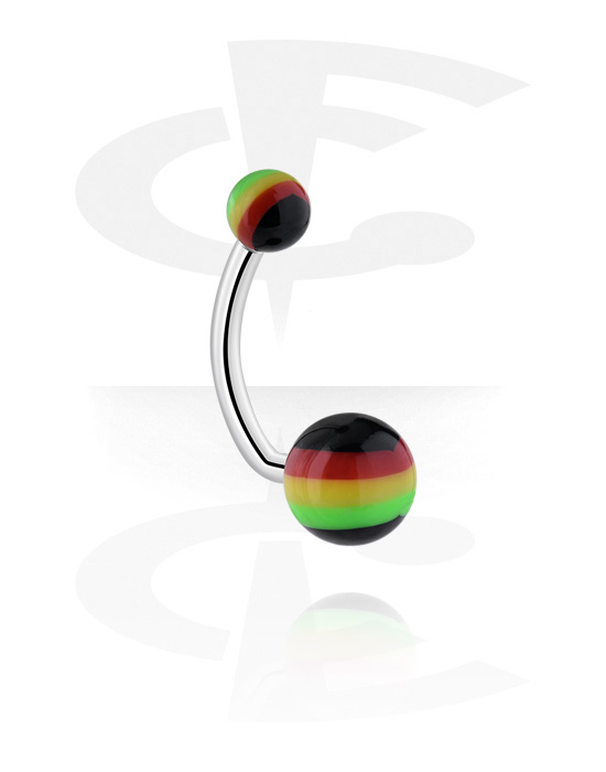 Curved bananabell made of surgical steel, with acrylic balls in funky rasta green, yellow and red.
