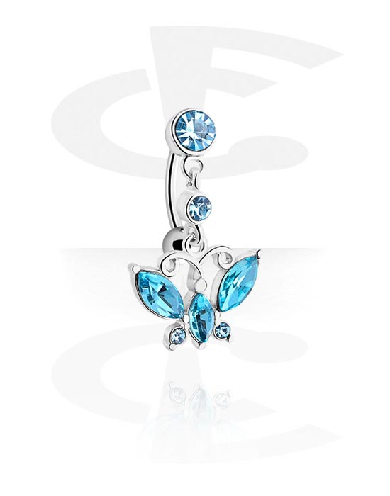 Navlering (kirurgisk stål, sølv, blank finish) med Charm med sommerfugl og krystaller