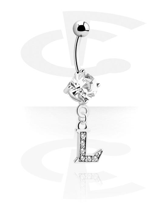 Navlering (kirurgisk stål, sølv, blank finish) med charm med bogstavet L og krystaller