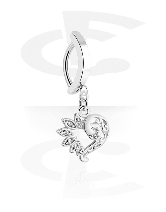 Navle-clicker (kirurgisk stål, sølv, blank finish) med hjertevedhæng og krystaller