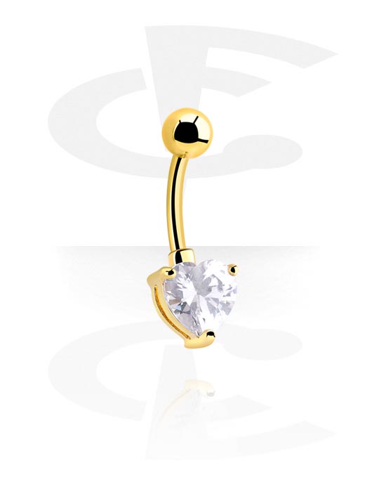 Golden curved barbell featuring a claw-set crystal heart. Super classy, with crystals available in various colours. Grab one now!