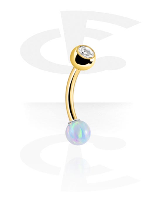 Navlering (kirurgisk stål, guld, blank finish) med Juvelbesat kugle og Syntetisk opal