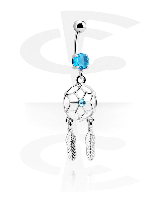 Navlering (kirurgisk stål, sølv, blank finish) med drømmefanger-charm og krystaller