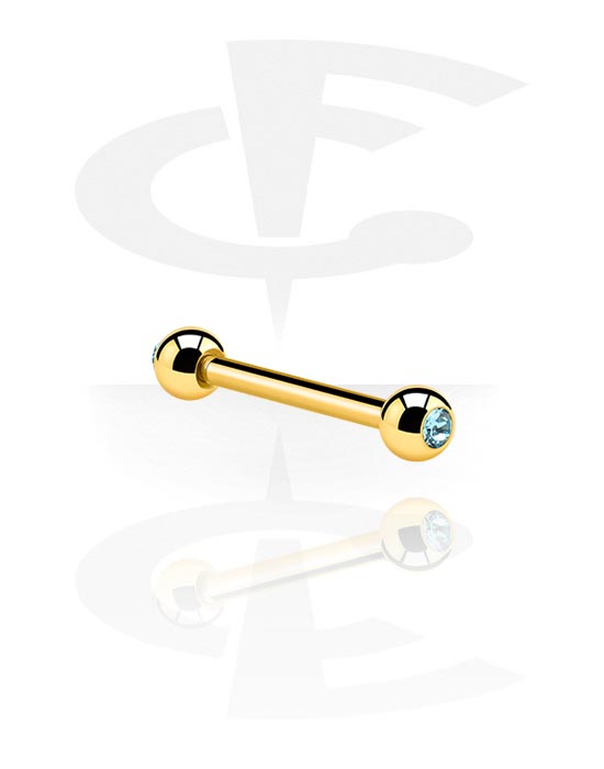 Stylish gold-plated 1.2 mm barbell with a twinkling jewelled ball at each end. Adds classy sparkle to your ear or lip piercing. Waiting for you in several colours.