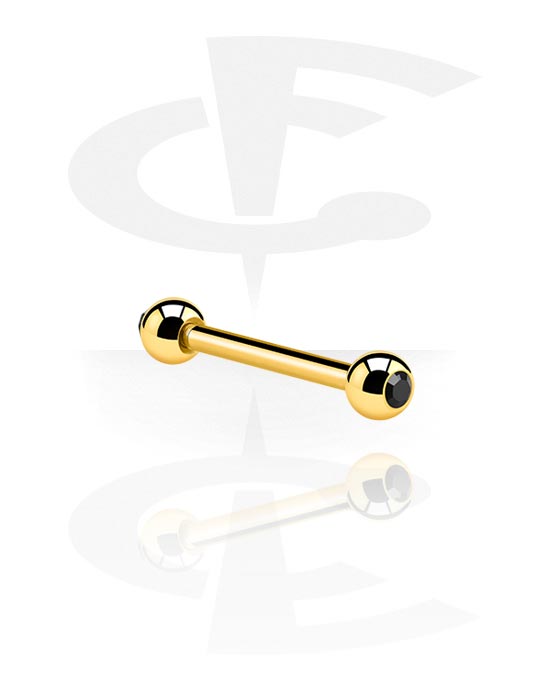 Stylish gold-plated 1.2 mm barbell with a twinkling jewelled ball at each end. Adds classy sparkle to your ear or lip piercing. Waiting for you in several colours.